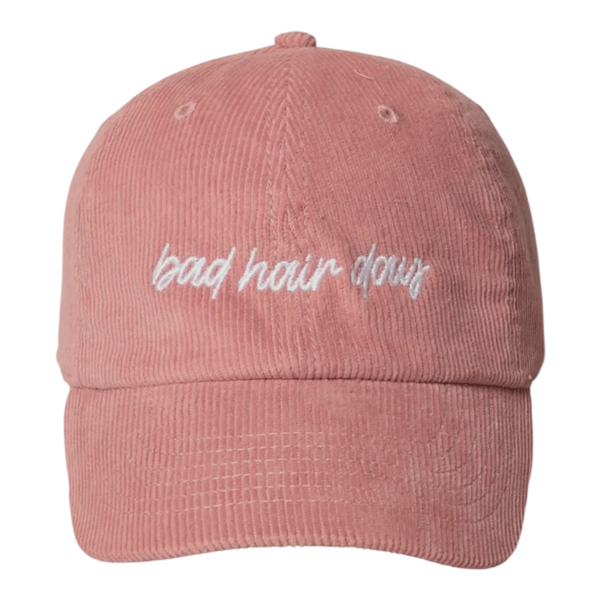 Your grab-and-go fix for messy hair days. This soft mauve corduroy cap features “Bad Hair Day” embroidery, a relaxed fit, and an adjustable snap closure - cute, comfy, and ready for any casual outing.
