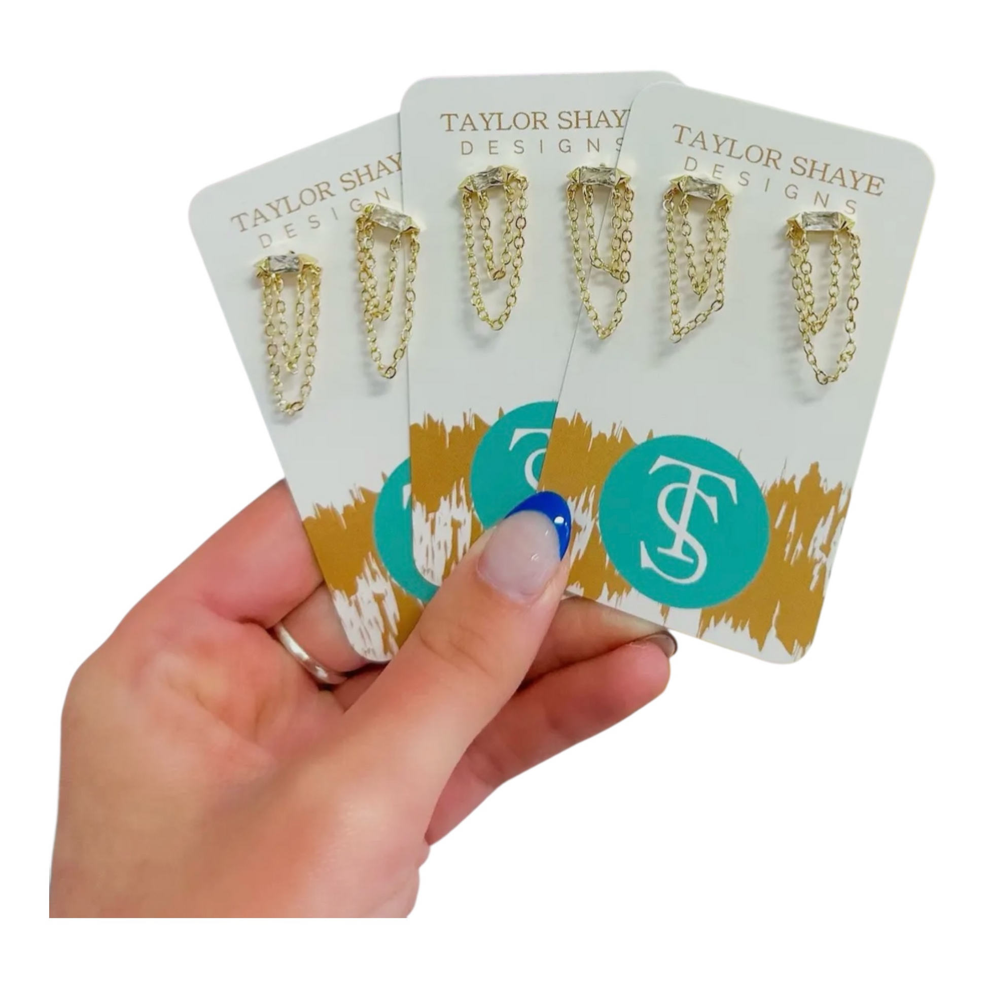 Delicate and versatile, these dainty chain drop earrings add the perfect hint of shimmer to any look. Lightweight and timeless, they’re your go-to accessory for effortless elegance.