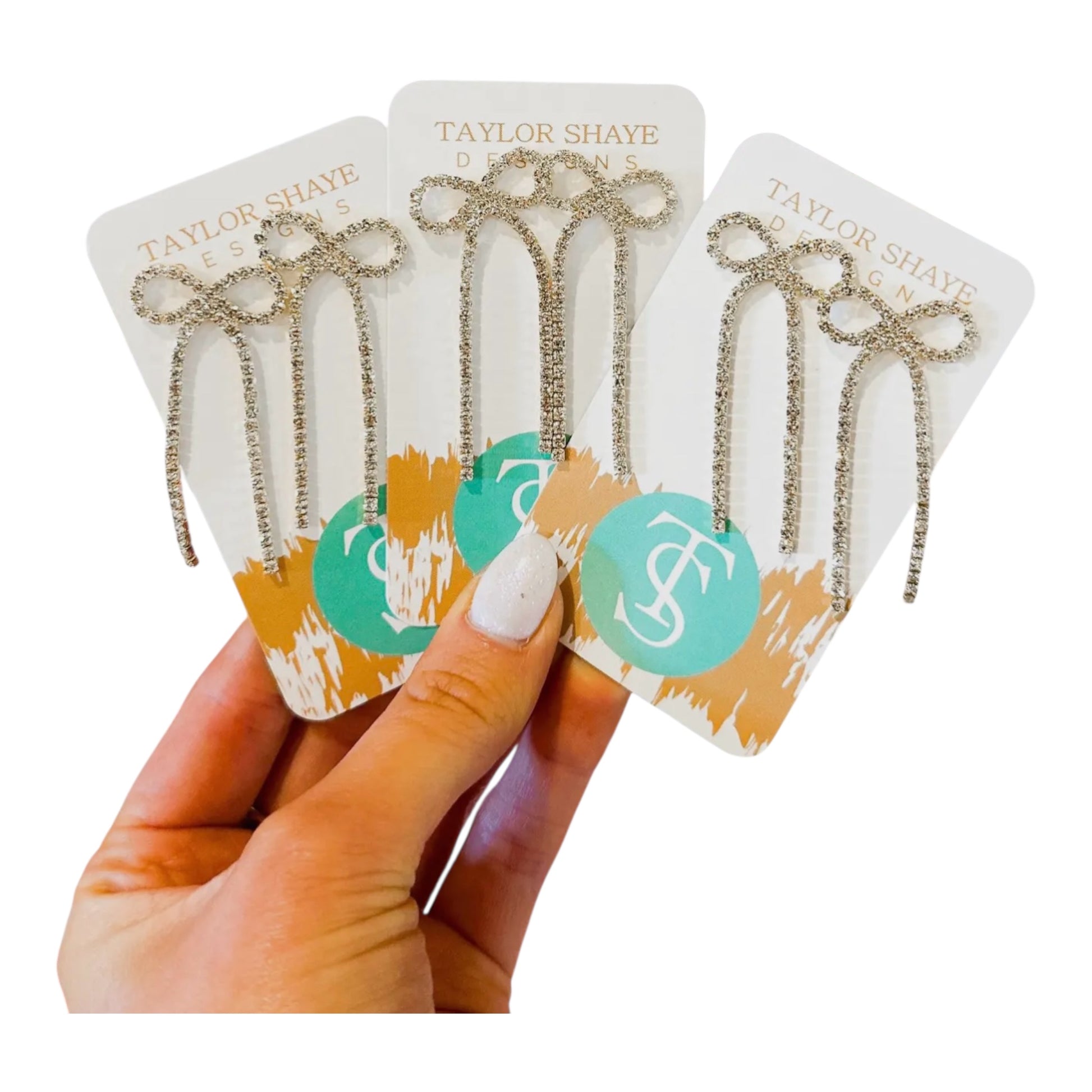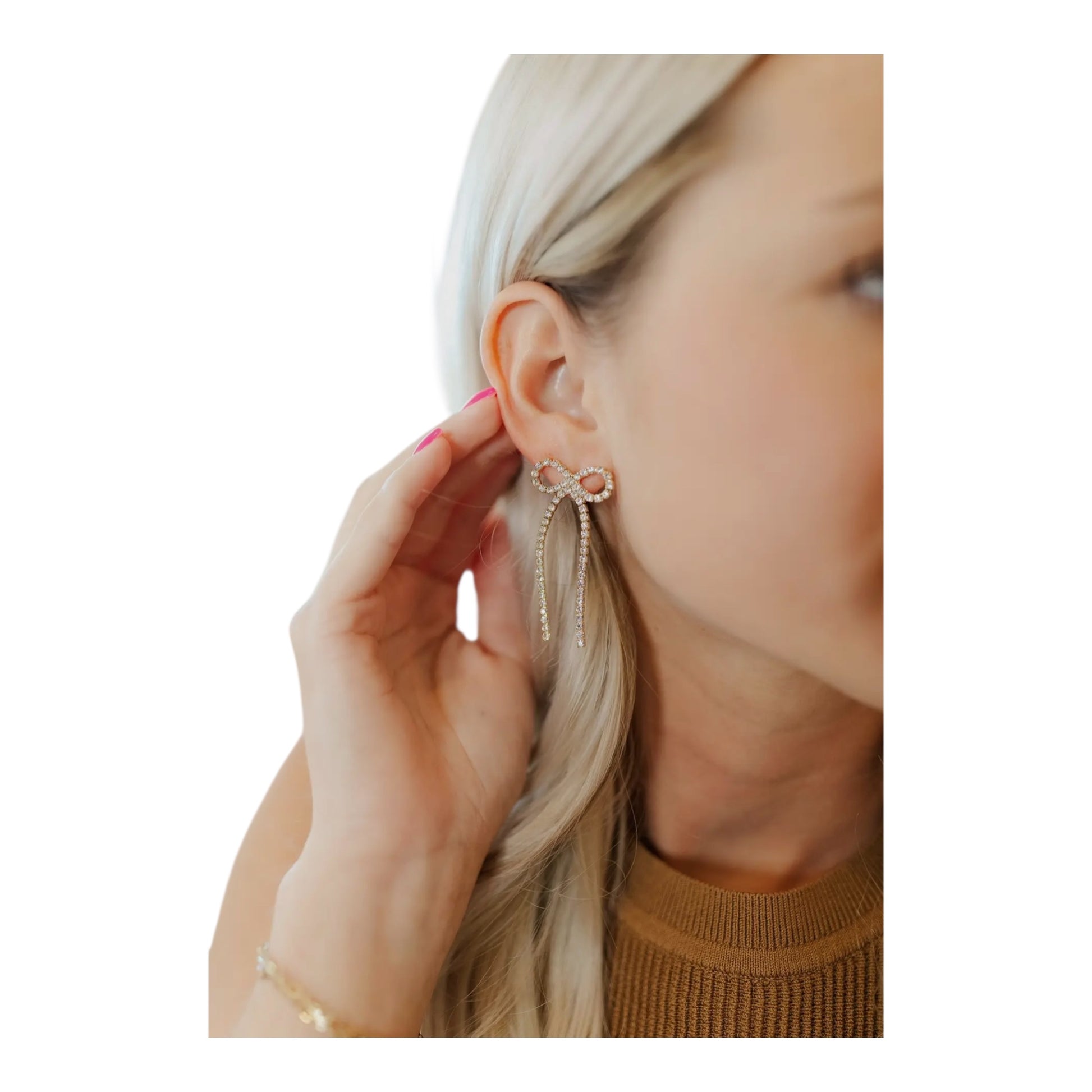 The Lina Bow Drops are a charming and feminine addition to any jewelry collection. These beautifully crafted dangle earrings feature a delicate bow design that adds just the right touch of elegance and style. Perfect for both casual days and special occasions.