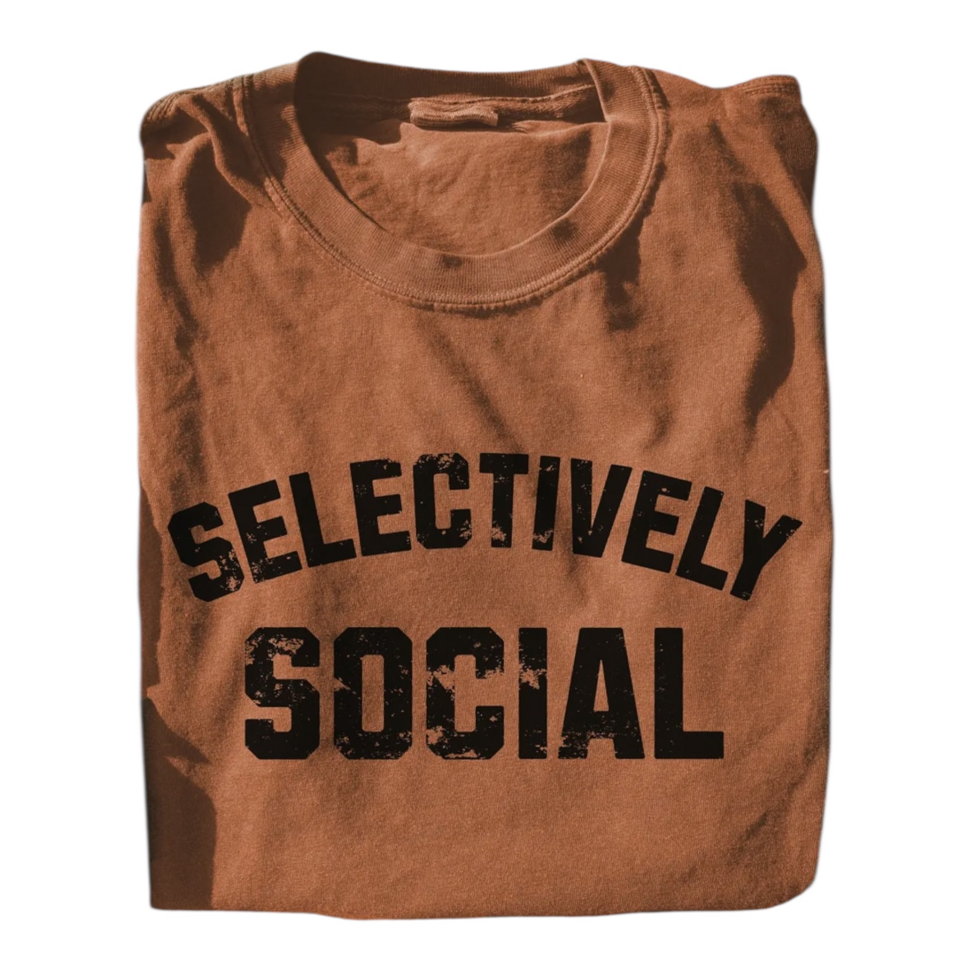 For those who love people… just not all the time. The Selectively Social T-Shirt is the perfect mix of humor and comfort. Made with premium Comfort Colors fabric, this tee has that lived-in, cozy feel you’ll never want to take off. Pair it with jeans, sweats, or leggings for an effortlessly cool look.