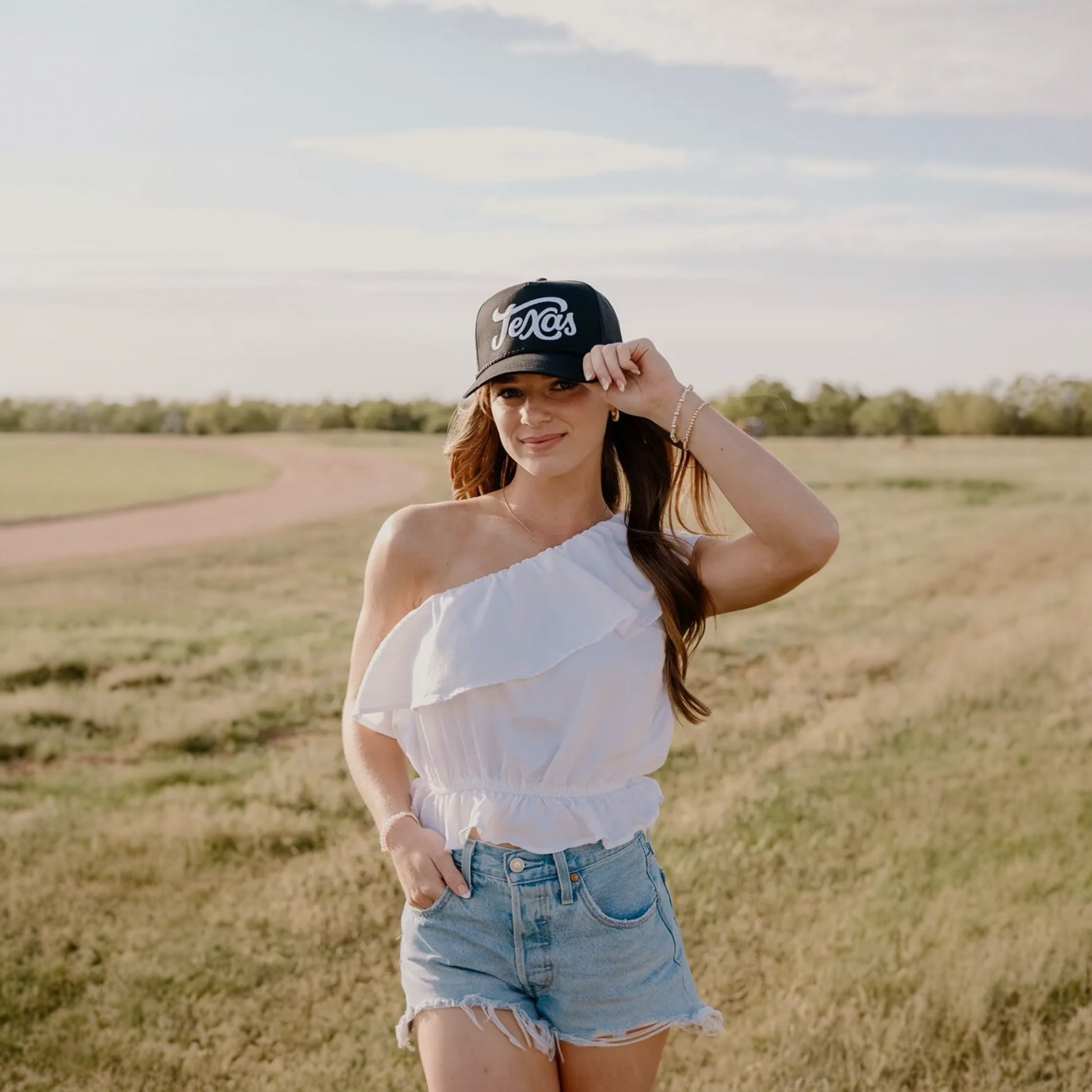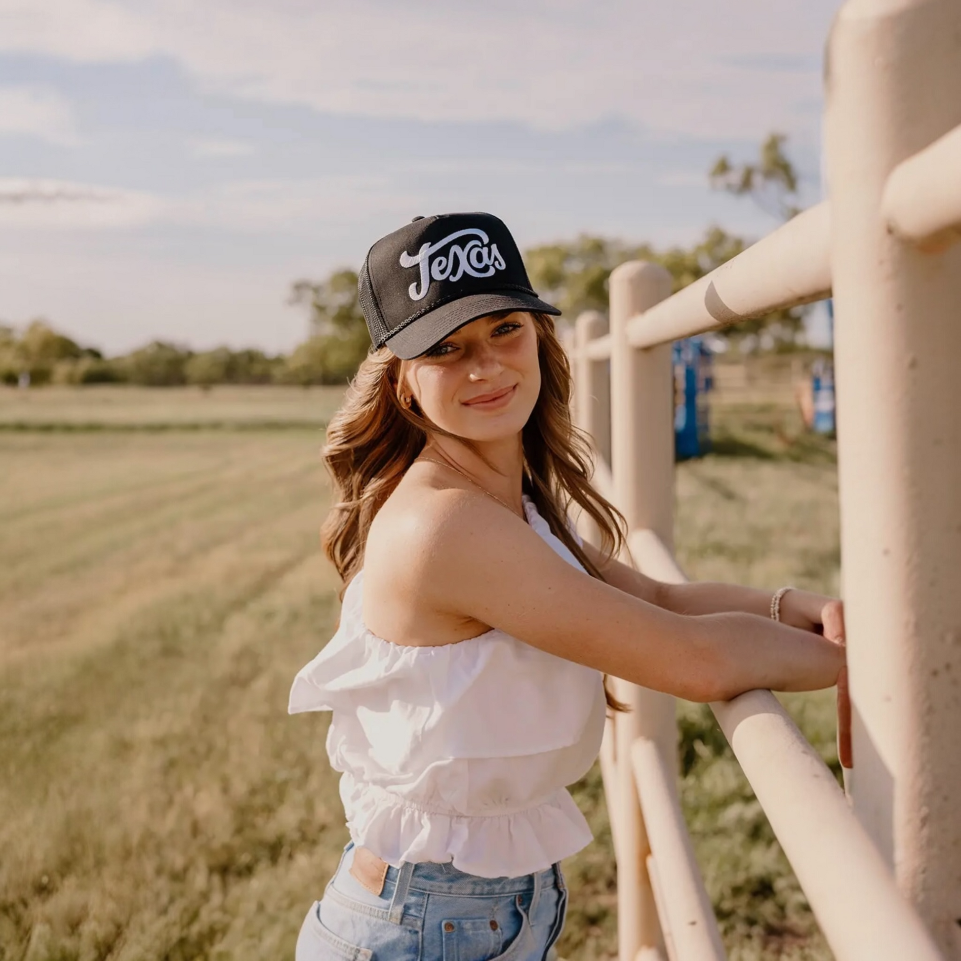 A classic with a bold Texas twist. This vintage-inspired black rope snapback is finished with crisp white embroidery, making it the perfect everyday hat with just the right amount of western edge. Whether you’re out on the ranch, in the city, or anywhere in between - this hat keeps it simple, timeless, and proudly Texan.