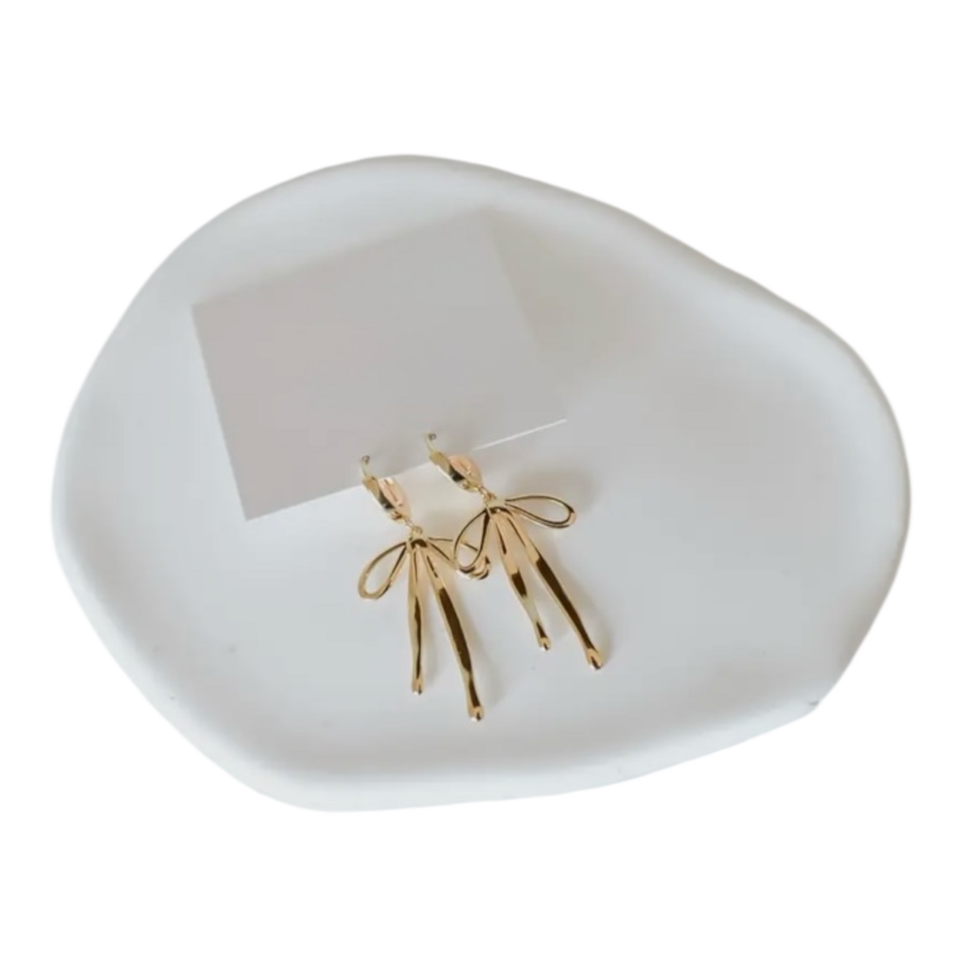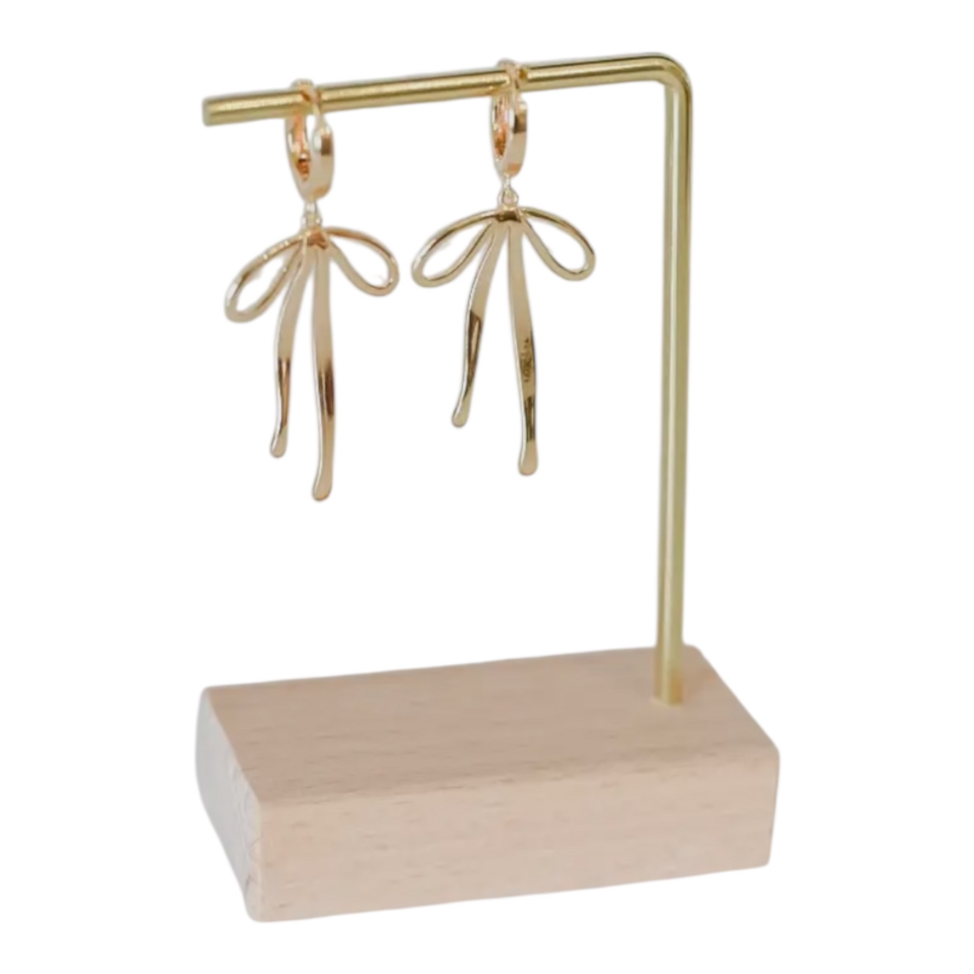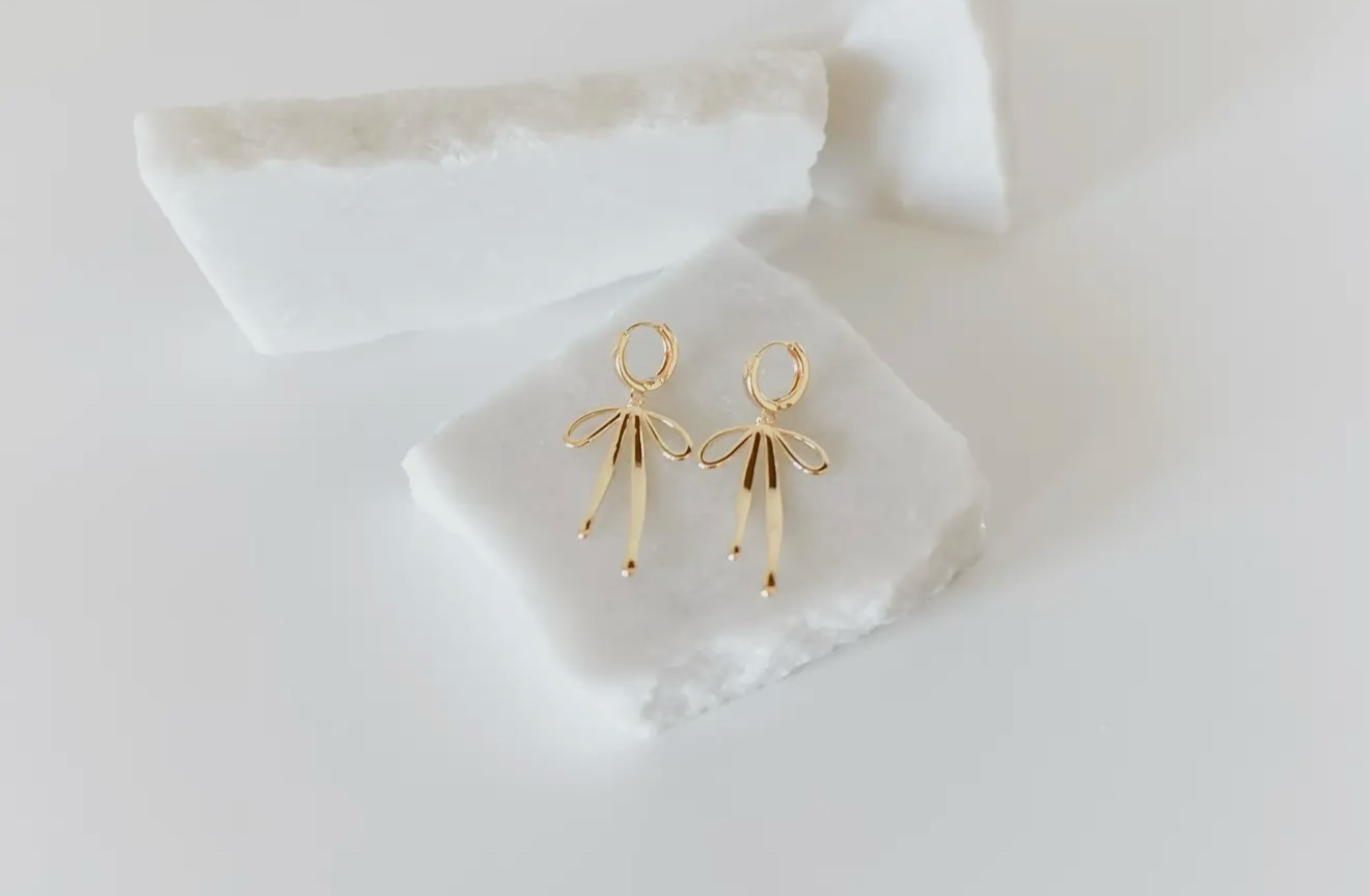 Lightweight 18k gold plated hoop earrings with a charming bow detail. So light, you may forget you’re even wearing them.