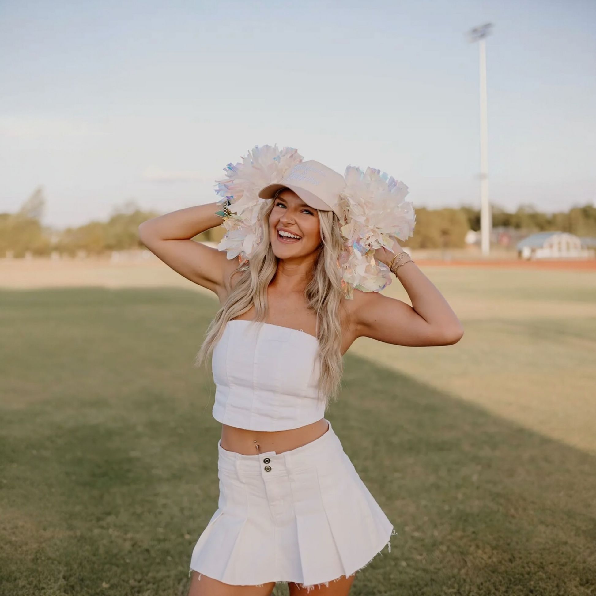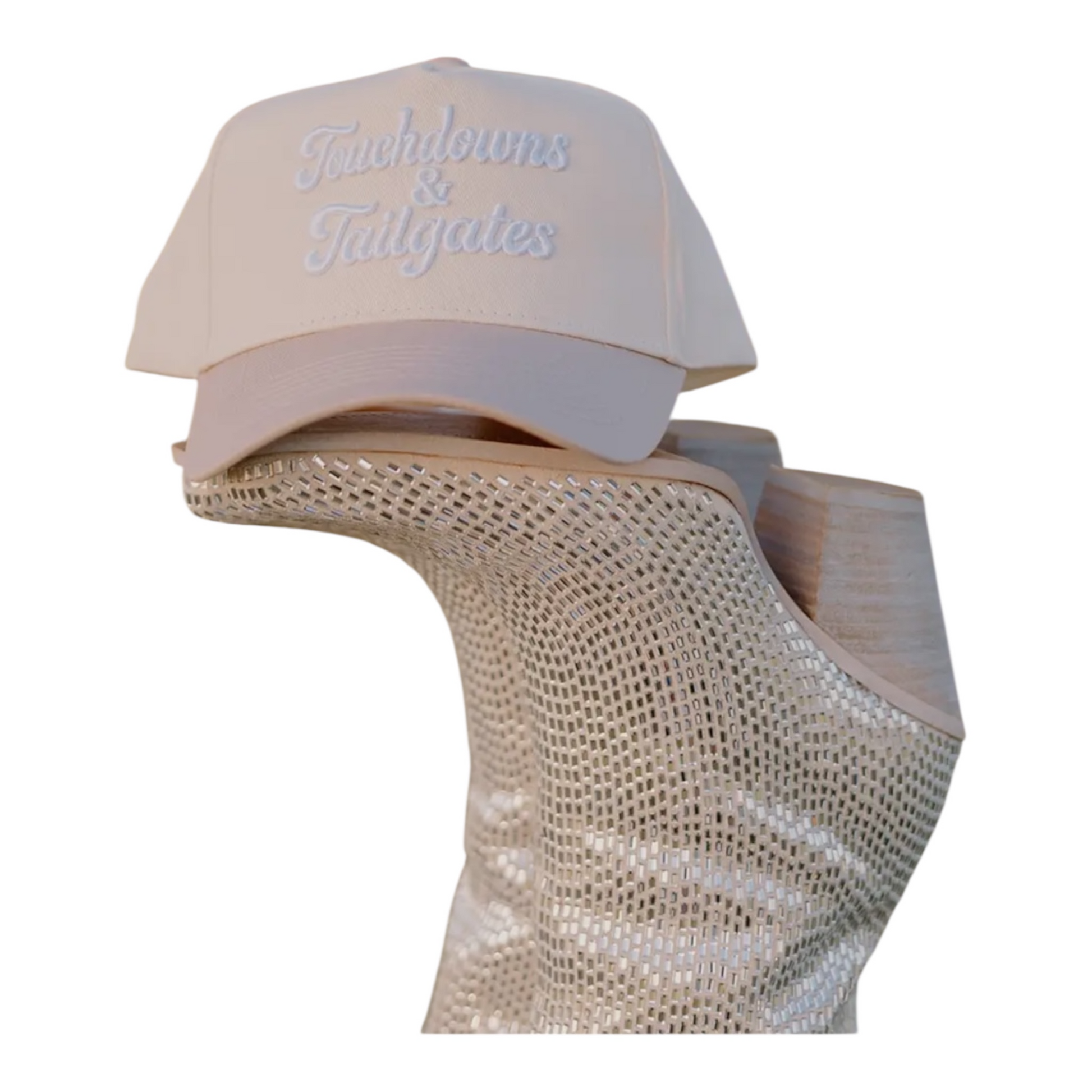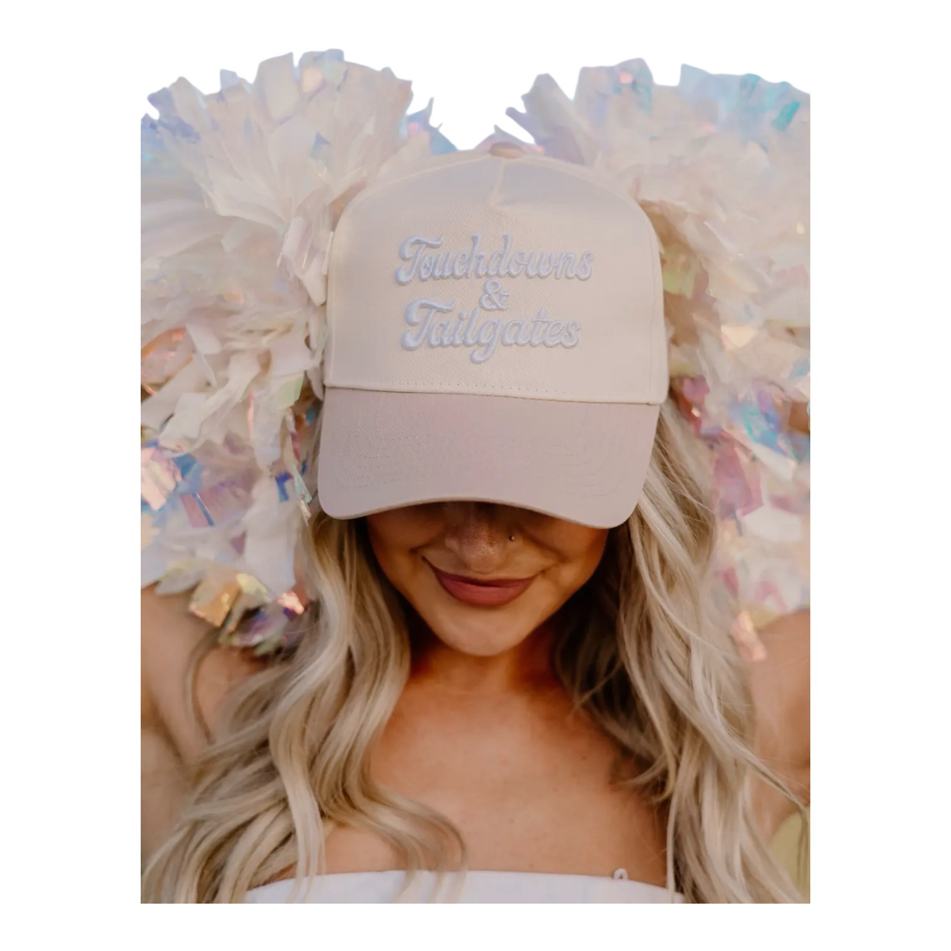 The perfect game day essential - this natural and white trucker hat features bold white puff embroidery that proudly says “Touchdowns & Tailgates.” Lightweight, breathable, and ready for every kickoff, cookout, and celebration.