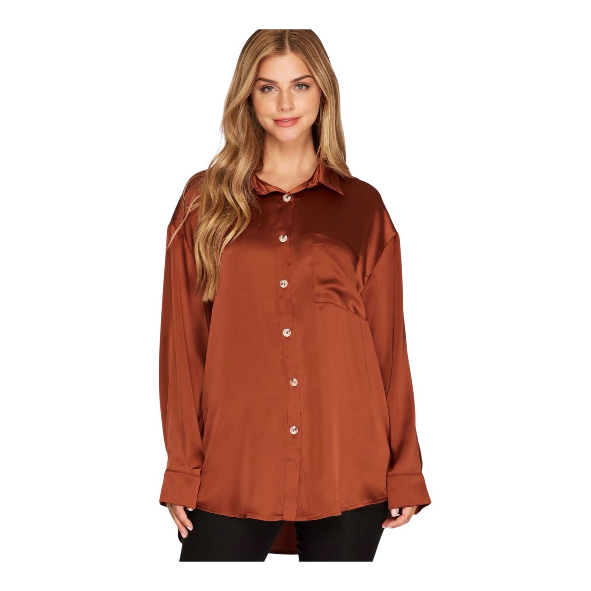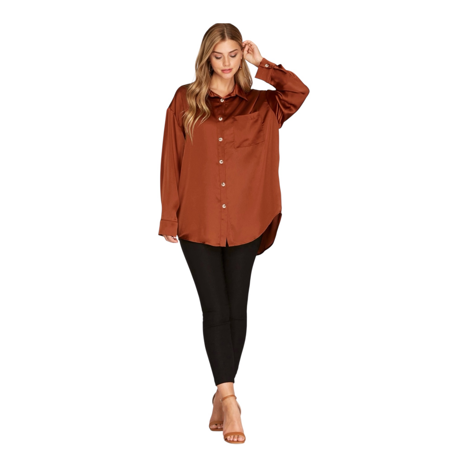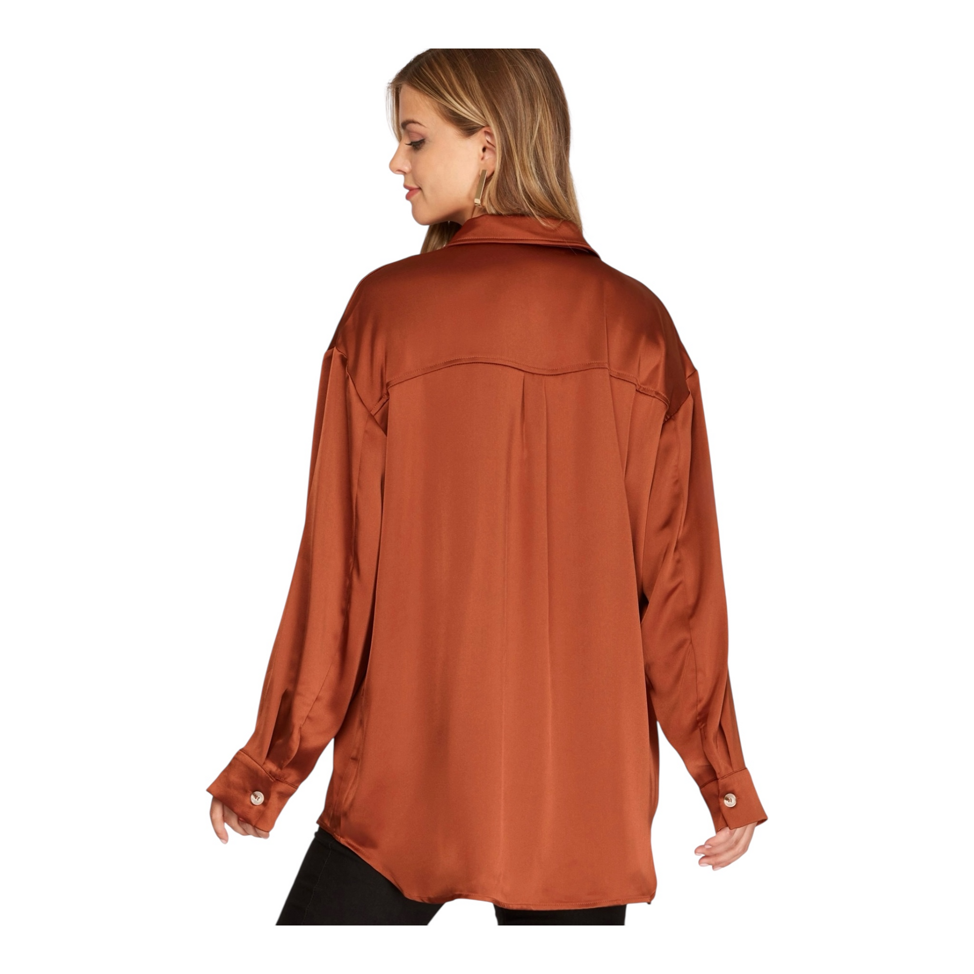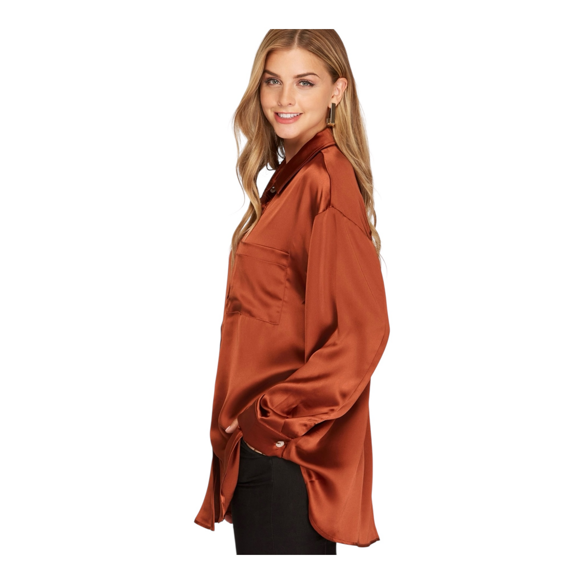 Relaxed and elegant, the Vienne Oversized Satin Shirt features a luxurious finish, front side pocket, and classic button-down silhouette for effortless style.